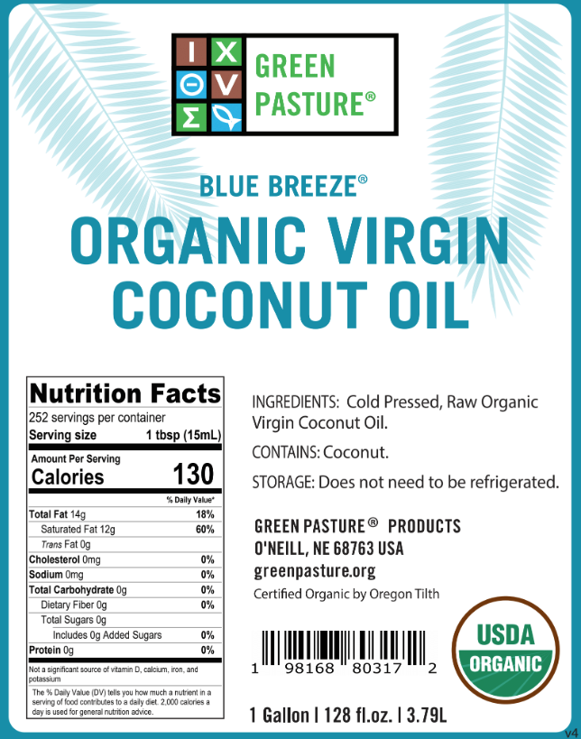 This coconut oil does not need to be kept refrigerated. Some uses include roasting, baking, skin and hair. Like all of Green Pasture’s sacred edible oils, Blue Breeze Organic Coconut Oil has the RAW seal on its label. Because coconut oil consists of medium-length fatty acids, it is absorbed faster by the body and can be used directly as a source of energy. Coconut oil can be used to: